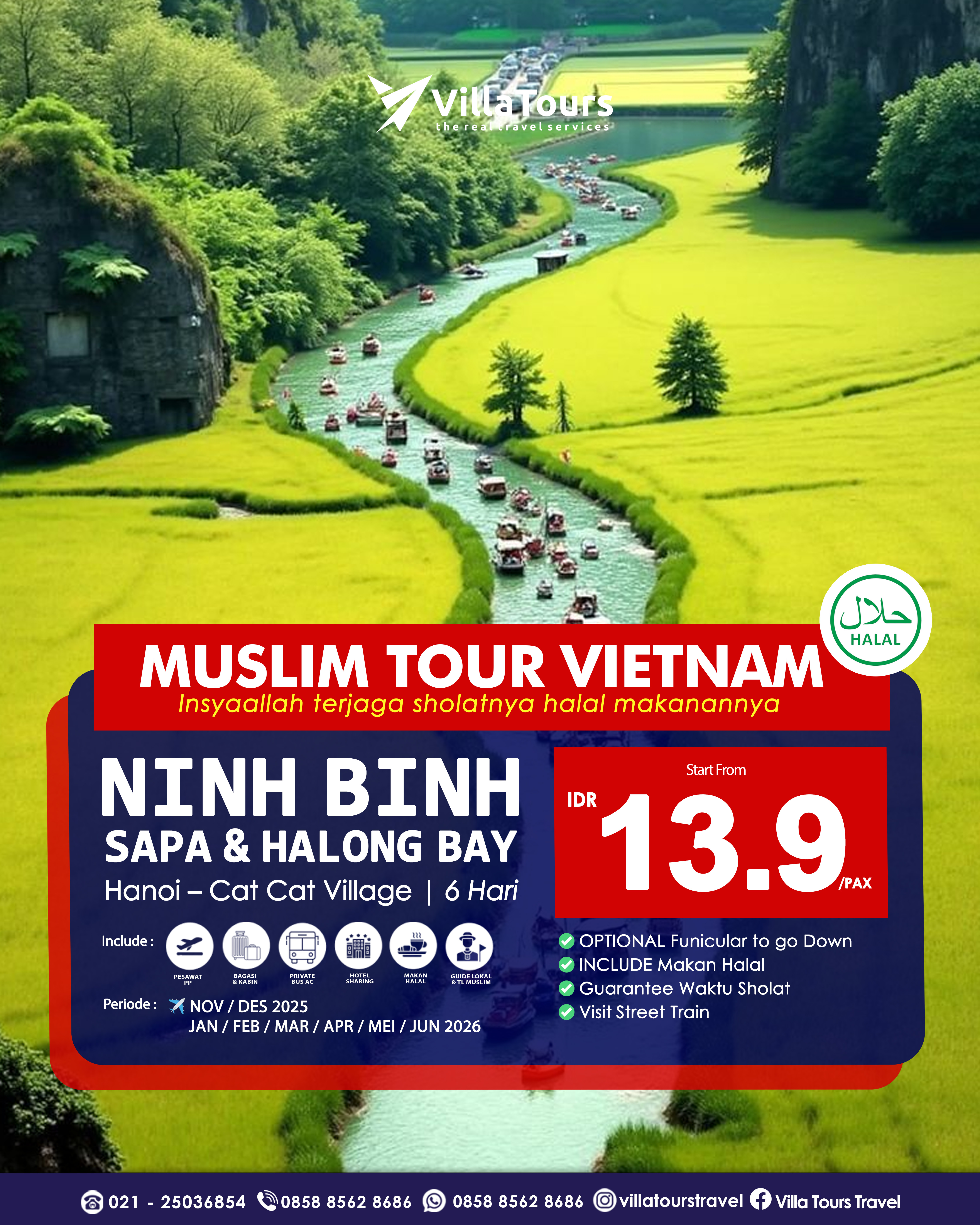 Jadwal & Itineray perjalanan (HOTEL & RUTE BUS) dapat berubah sewaktu-waktu tanpa pemberitahuan terlebih dahulu kepada peserta, sesuai dengan kebijakan Airlines, ketersediaan kamar hotel, regulasi Bus di Vietnam dan menyesuaikan Musim di Vietnam.