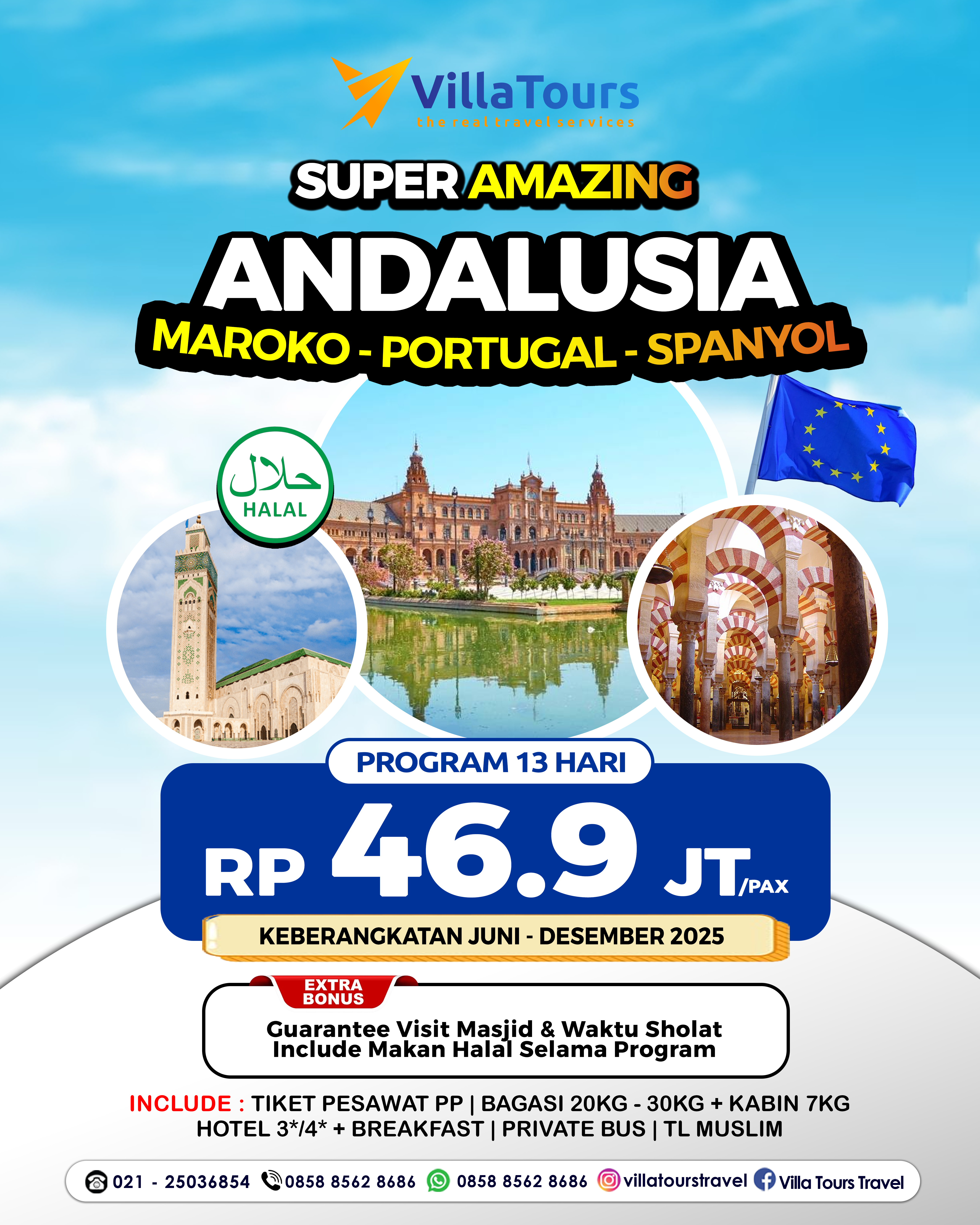 FORCE MAJEUR : Dalam hal terjadi keadaan force majeur/terpaksa/tidak teratasi karena bencana alam, kerusuhan, suasana mencekam, dan lain-lain, VILLA TOURS berhak tanpa pemberitahuan terlebih dahulu kepada Peserta Tour, merubah rencana perjalanan, baik susunan maupun jadwalnya, demi kepentingan dan keamanan serta kelancaran perjalanan. Dalam hal ini tidak ada pengembalian uang atas service yang tidak digunakan.