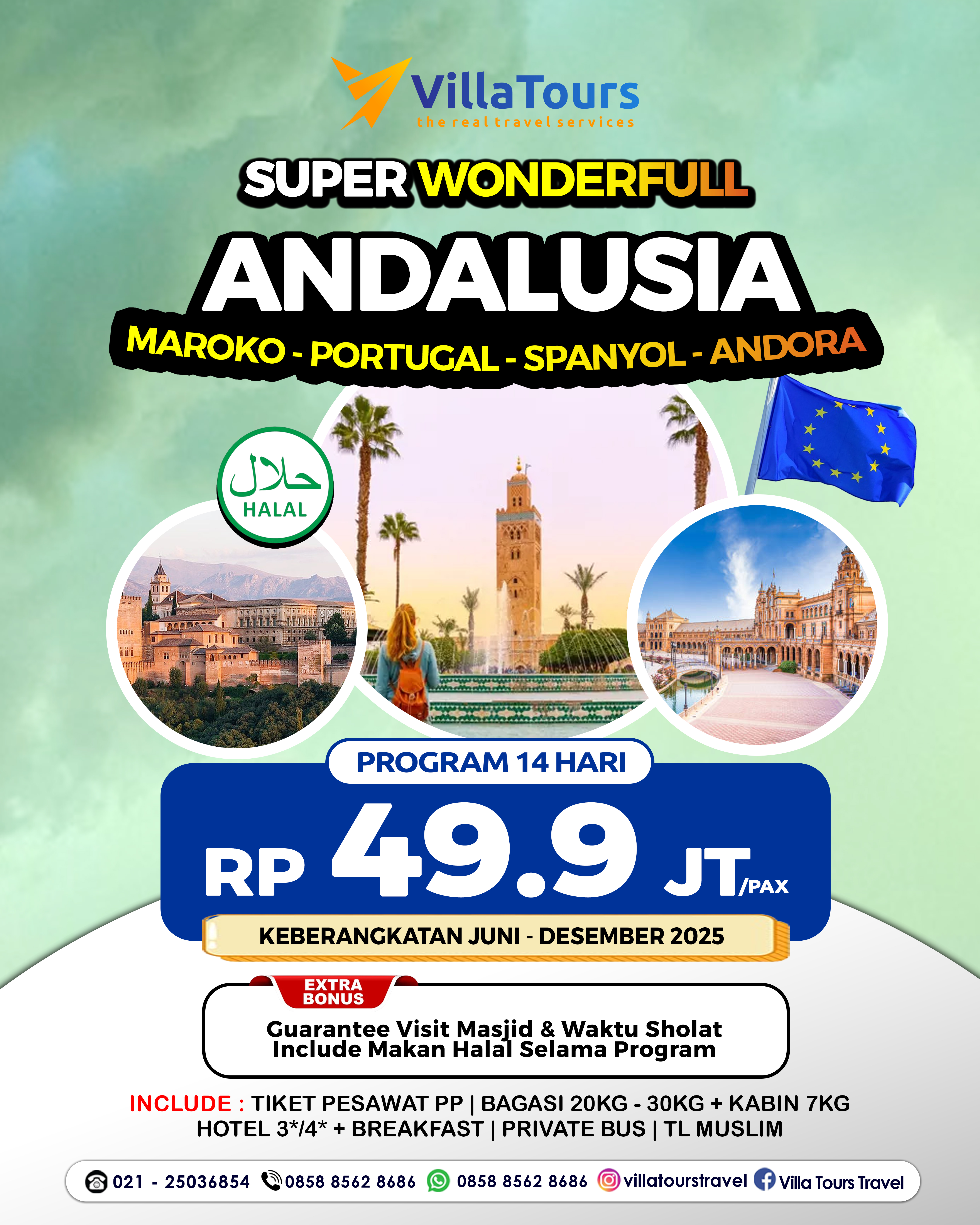 CATATAN PENTING.!!! VILLA TOURS sebagai pihak travel agent hanya bisa membantu mengajukan permohonan Visa sesuai prosedur dan dokumen yang di perlukan. Keputusan diterima atau tidaknya visa adalah mutlak wewenang kedutaan, peserta tidak berhak menyalahkan Travel Agent termasuk apabila visa tidak keluar tepat pada waktunya. Pihak Travel tidak dapat dituntut atas segala kerugian yang timbul yang berkaitan dengan visa, segala kerugian tersebut sepenuhnya menjadi tangung jawab peserta.