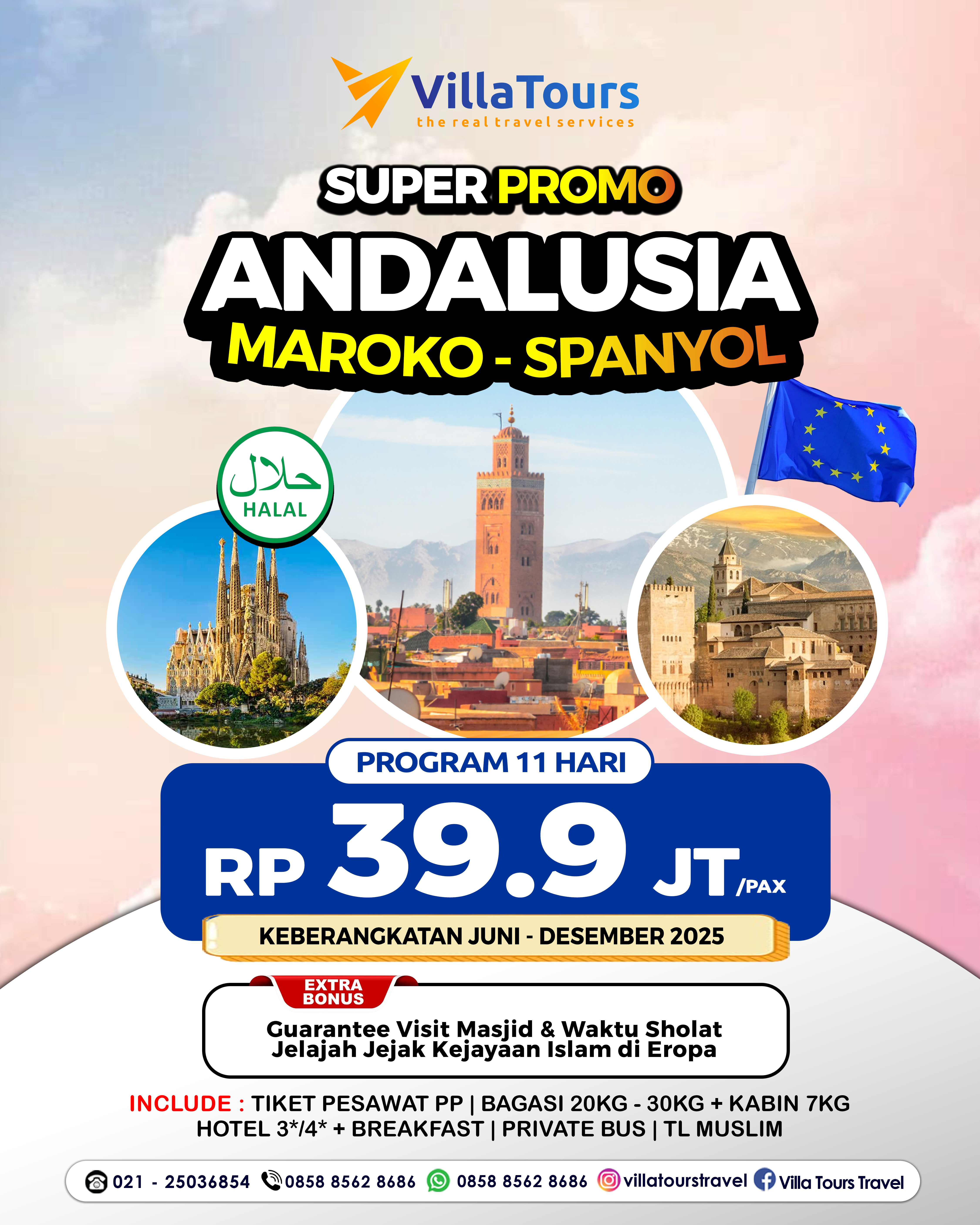 FORCE MAJEUR : Dalam hal terjadi keadaan force majeur/terpaksa/tidak teratasi karena bencana alam, kerusuhan, suasana mencekam, dan lain-lain, VILLA TOURS berhak tanpa pemberitahuan terlebih dahulu kepada Peserta Tour, merubah rencana perjalanan, baik susunan maupun jadwalnya, demi kepentingan dan keamanan serta kelancaran perjalanan. Dalam hal ini tidak ada pengembalian uang atas service yang tidak digunakan.