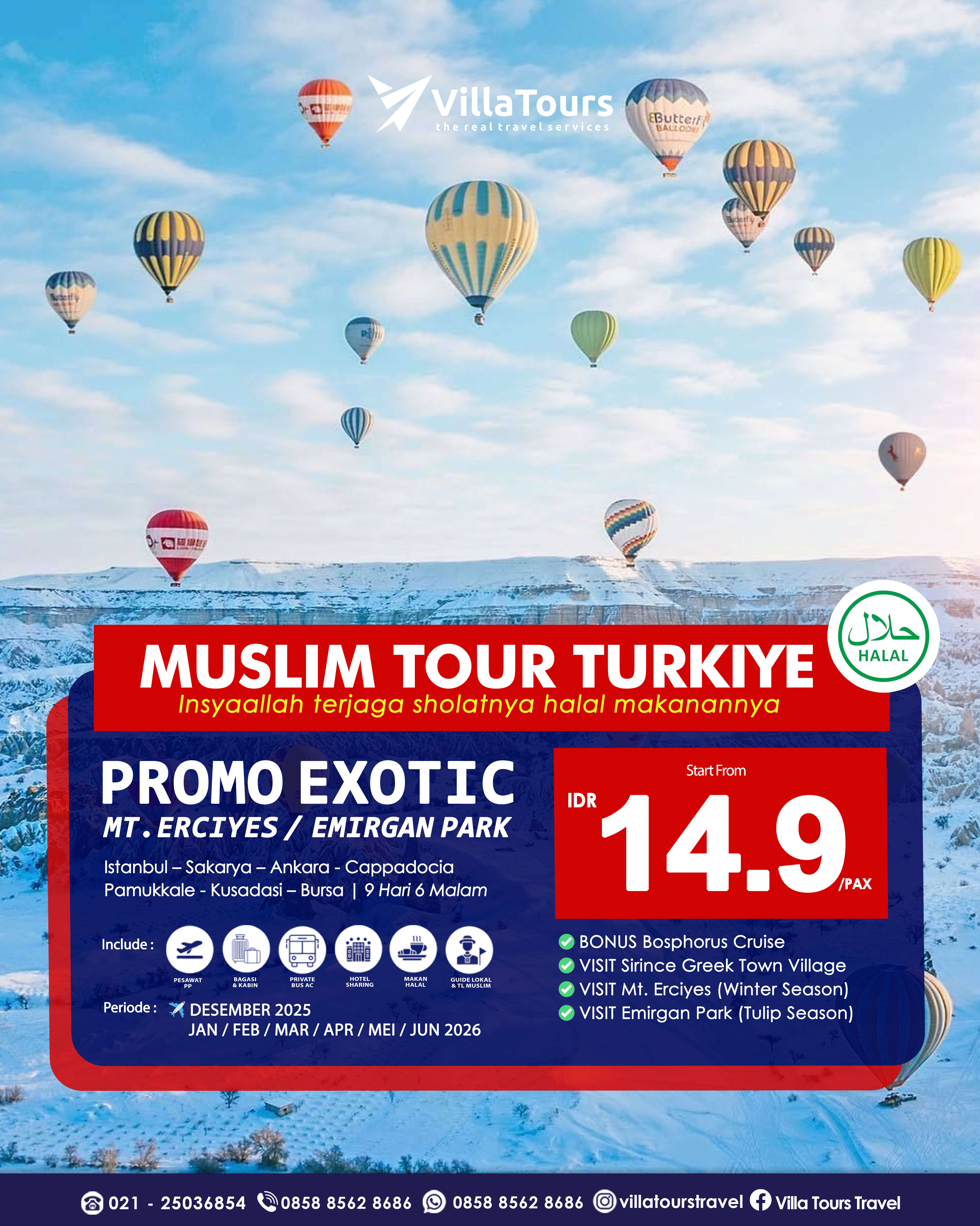 FORCE MAJEUR : Dalam hal terjadi keadaan force majeur/terpaksa/tidak teratasi karena bencana alam, kerusuhan, suasana mencekam, dan lain-lain, VILLA TOURS berhak, tanpa pemberitahuan terlebih dahulu kepada Peserta Tour, merubah rencana perjalanan, baik susunan maupun jadwalnya, hal manaperubahan itu dilakukan demi kepentingan dan keamanan Peserta serta kelancaran perjalanan. Dalam hal ini tidak ada pengembalian uang atas service yang tidak digunakan.