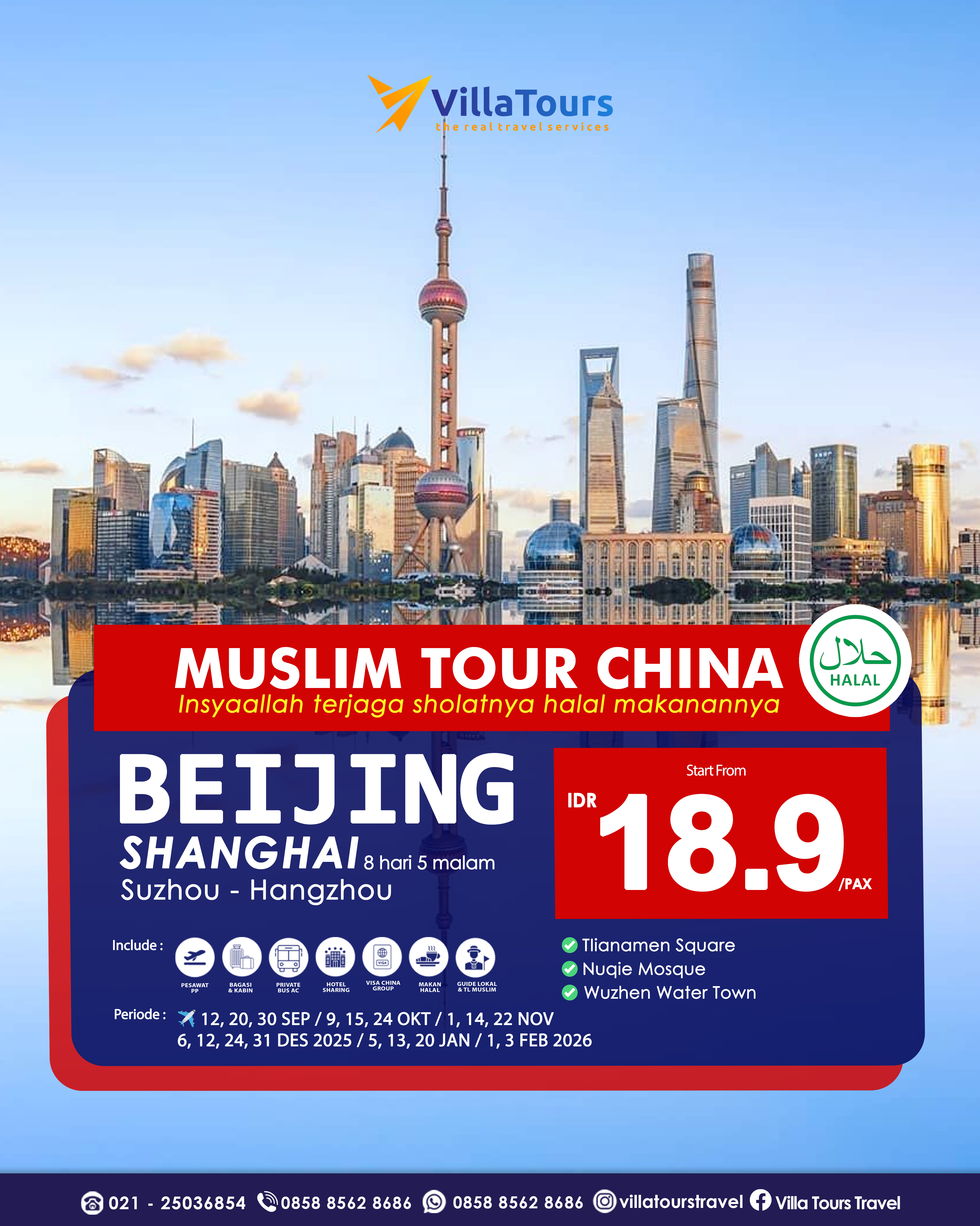 Jadwal & Itineray perjalanan (HOTEL & RUTE BUS) dapat berubah sewaktu-waktu tanpa pemberitahuan terlebih dahulu kepada peserta, sesuai dengan kebijakan Airlines, ketersediaan kamar hotel, regulasi Bus dan penyesuaian Musim di China