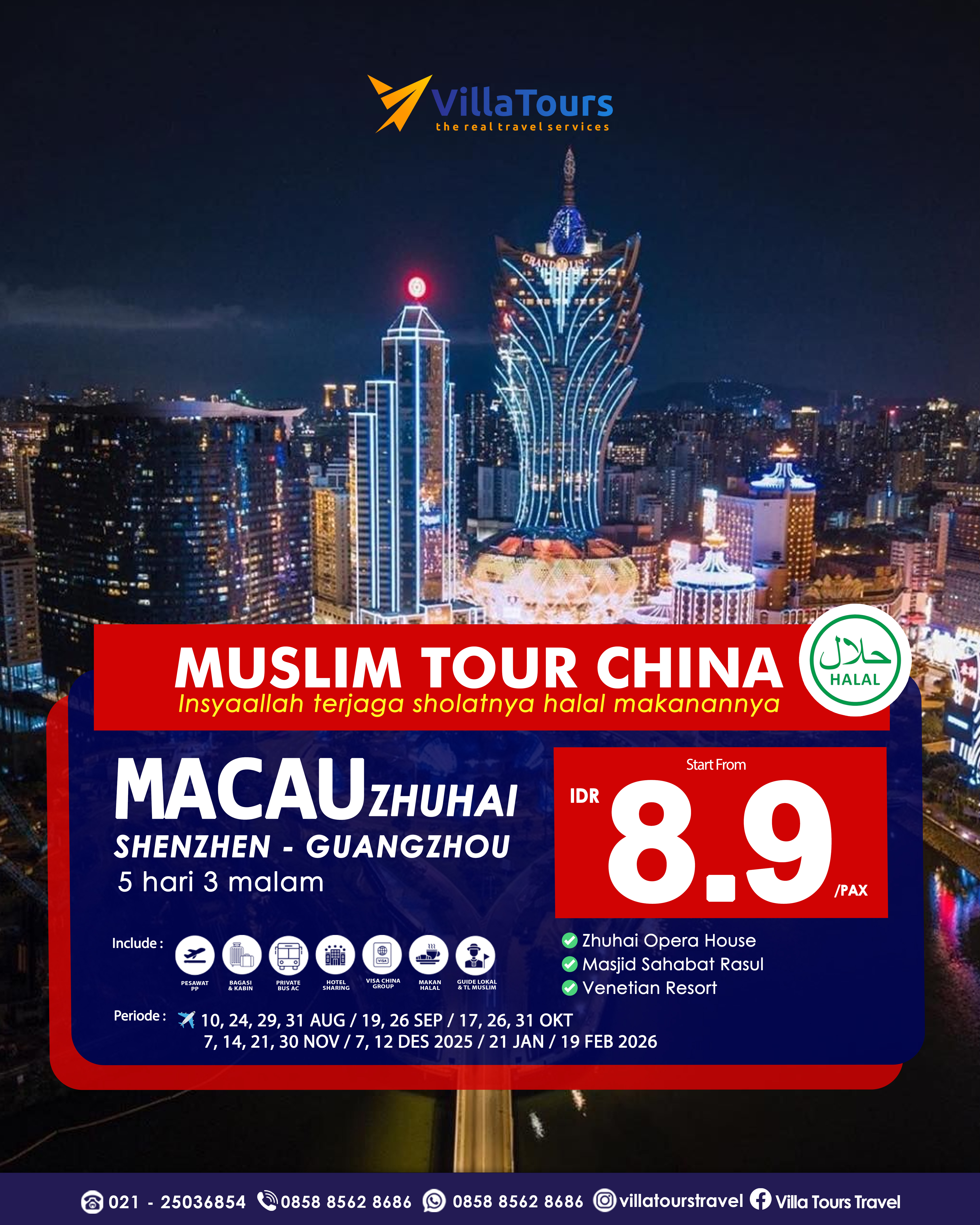 ITINERARY: Jadwal dan Itinerary dapat berubah sewaktu- waktu tanpa pemberitahuan terlebih dahulu menyesuaikan kebijakan pihak airlines, hotel dan partner