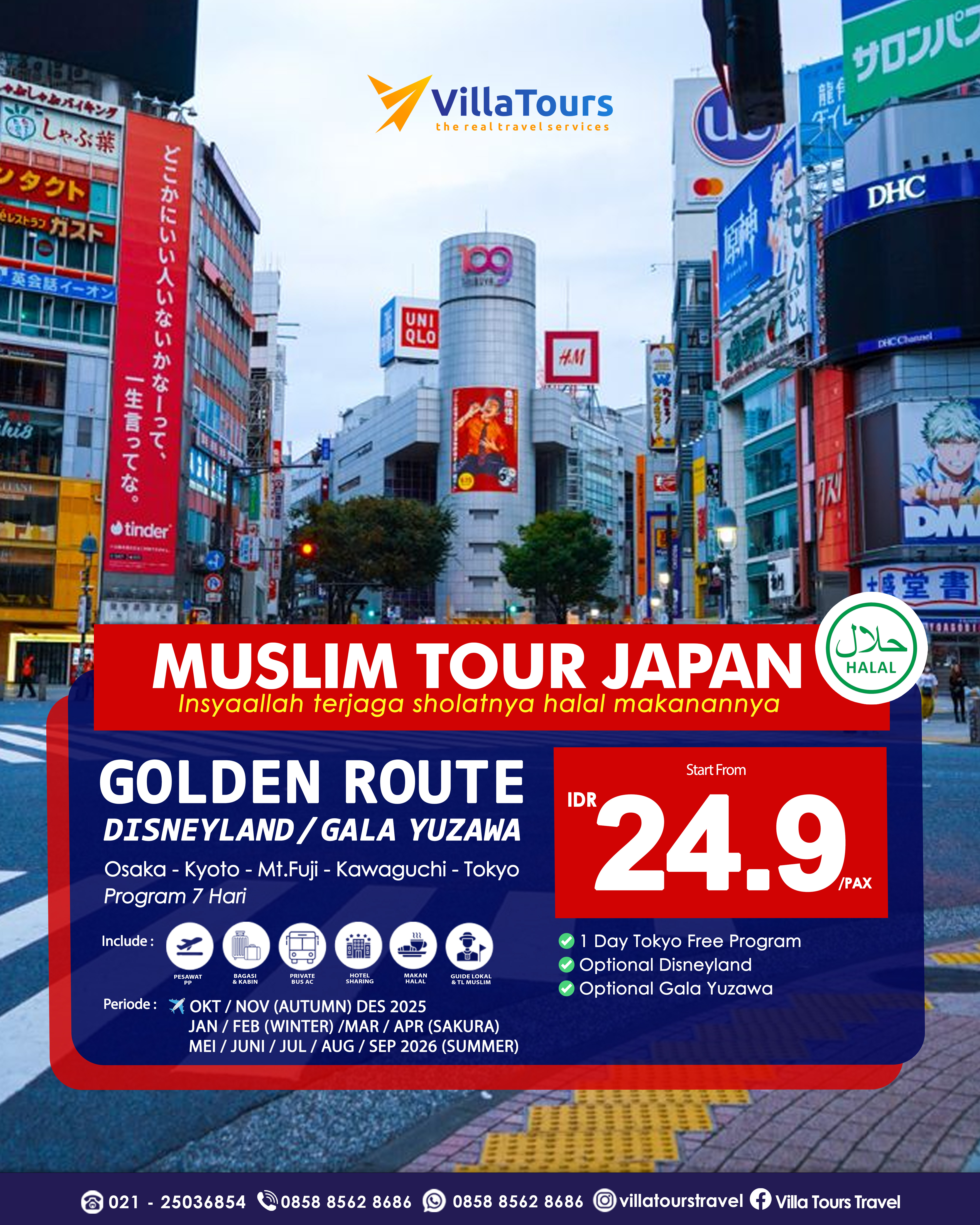 FORCE MAJEUR : Dalam hal terjadi keadaan force majeur/terpaksa/tidak teratasi karena bencana alam, kerusuhan, suasana mencekam, dan lain-lain, VILLA TOURS berhak tanpa pemberitahuan terlebih dahulu kepada Peserta Tour, merubah rencana perjalanan, baik susunan maupun jadwalnya, demi kepentingan dan keamanan serta kelancaran perjalanan. Dalam hal ini tidak ada pengembalian uang atas service yang tidak digunakan