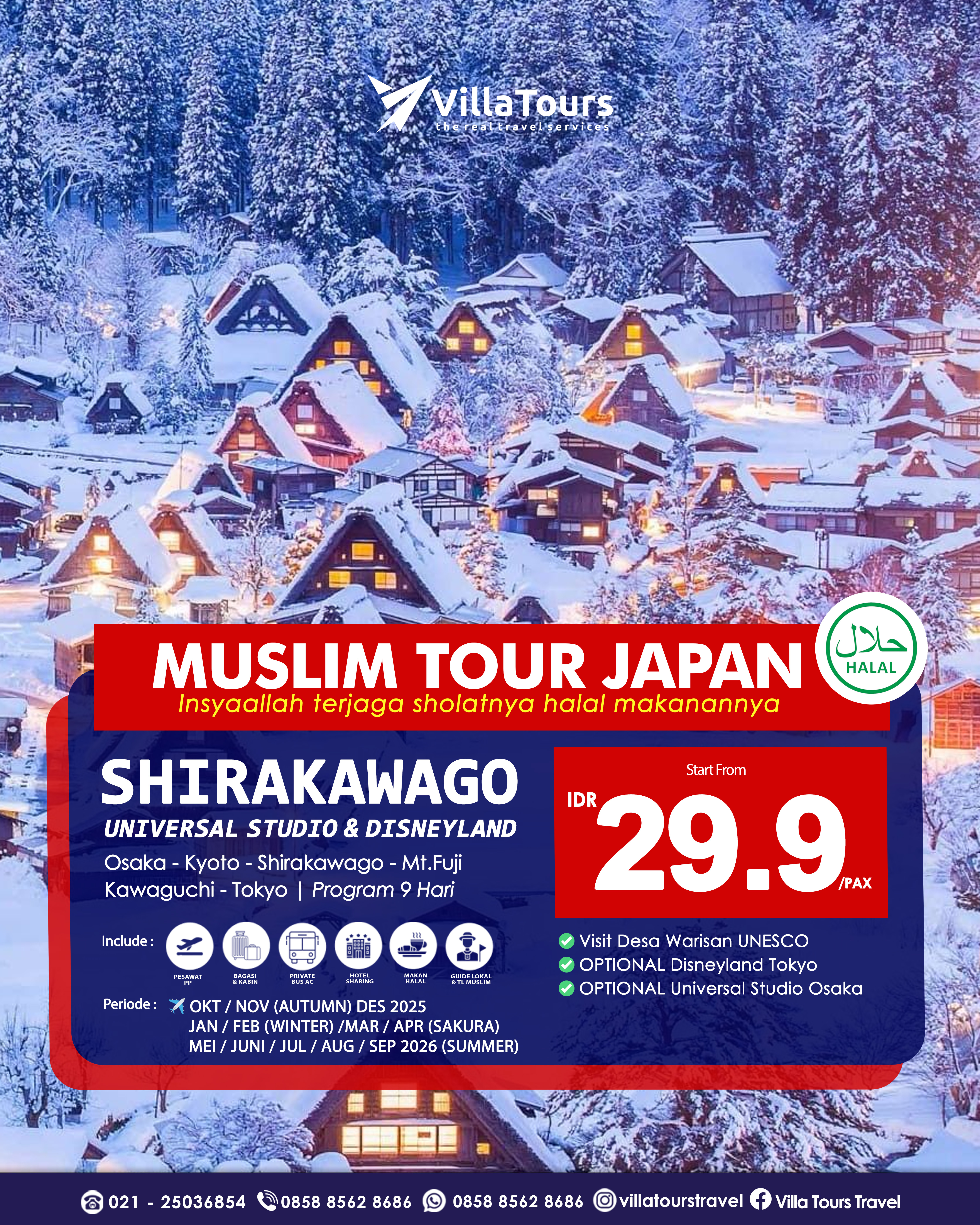 FORCE MAJEUR : Dalam hal terjadi keadaan force majeur/terpaksa/tidak teratasi karena bencana alam, kerusuhan, suasana mencekam, dan lain - lain, VILLA TOURS berhak tanpa pemberitahuan terlebih dahulu kepada Peserta Tour, merubah rencana perjalanan, baik susunan maupun jadwalnya, demi kepentingan dan keamanan serta kelancaran perjalanan. Dalam hal ini tidak ada pengembalian uang atas service yang tidak digunakan