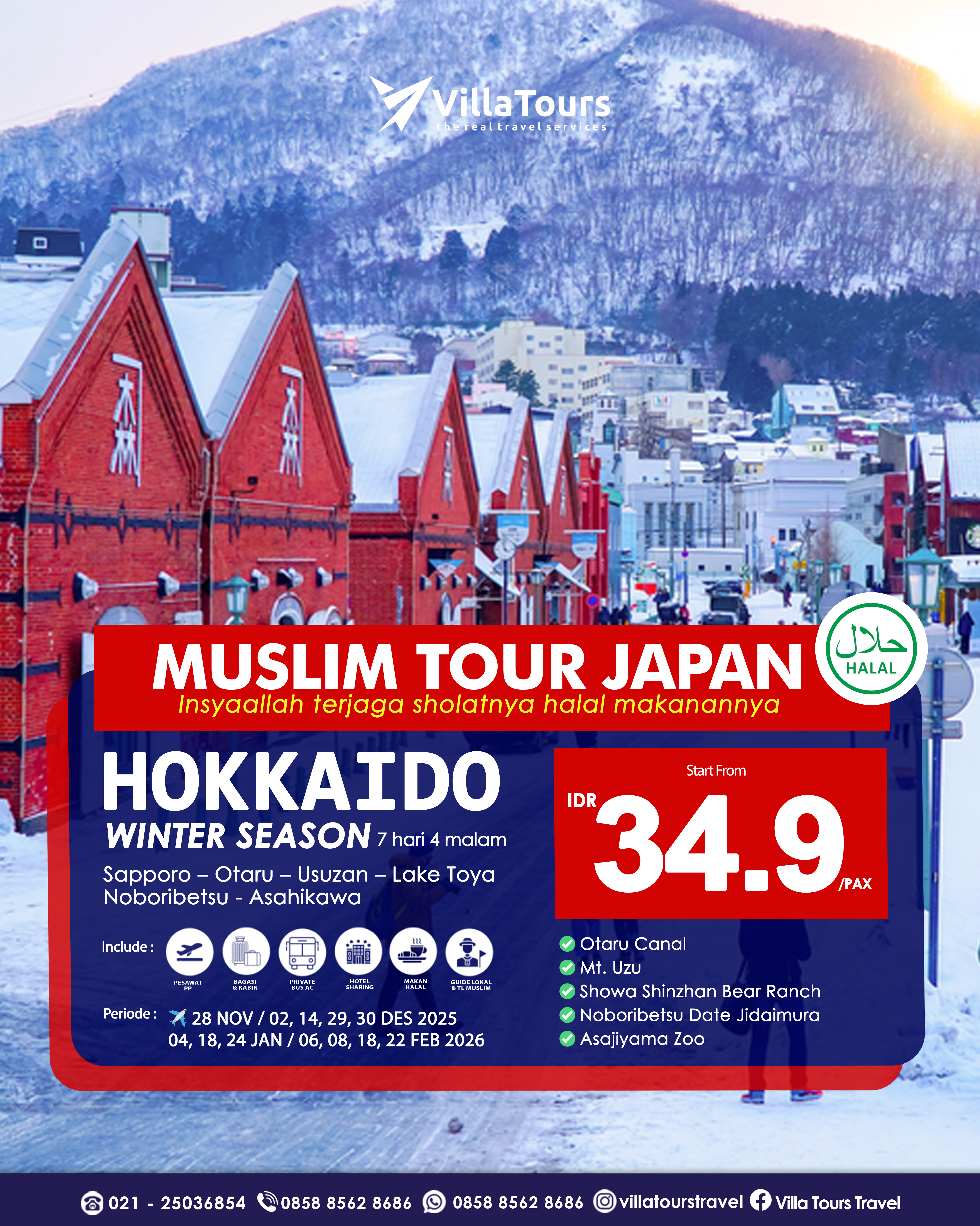 ITINERARY : Jadwal dan Itinerary dapat berubah sewaktu-waktu tanpa pemberitahuan terlebih dahulu menyesuaikan kebijakan pihak airlines, hotel dan partner agent di luar negeri. Segala kerugian yang terjadi baik materil atau immateril yang timbul tidak dapat dibebankan kepada pihak Villa Tours.