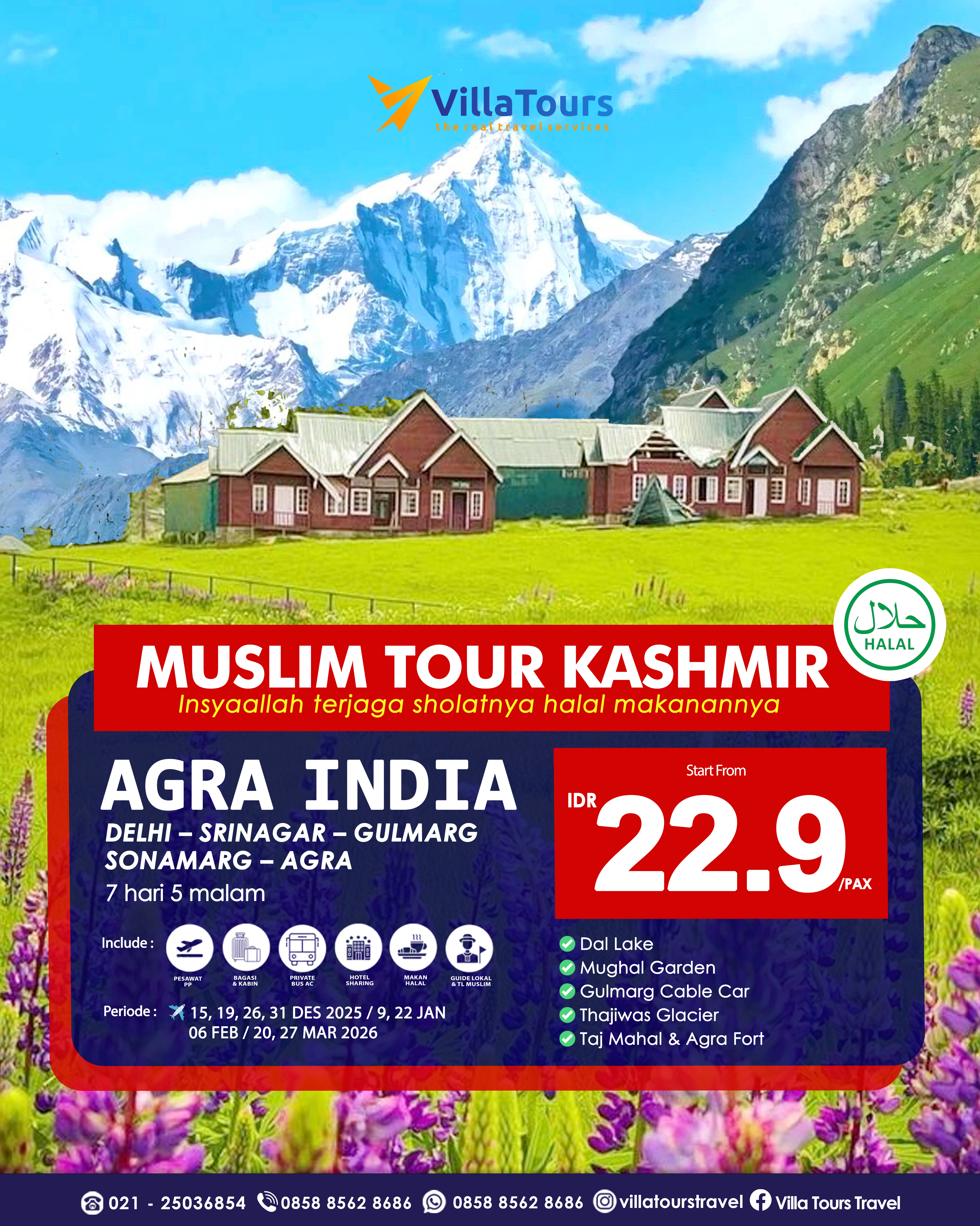 ITINERARY : Jadwal dan Itinerary dapat berubah sewaktu- waktu tanpa pemberitahuan terlebih dahulu menyesuaikan kebijakan pihak airlines, hotel dan partner agent di luar negeri. Segala kerugian yang terjadi baik materil atau immateril yang timbul tidak dapat dibebankan kepada pihak Villa Tours.