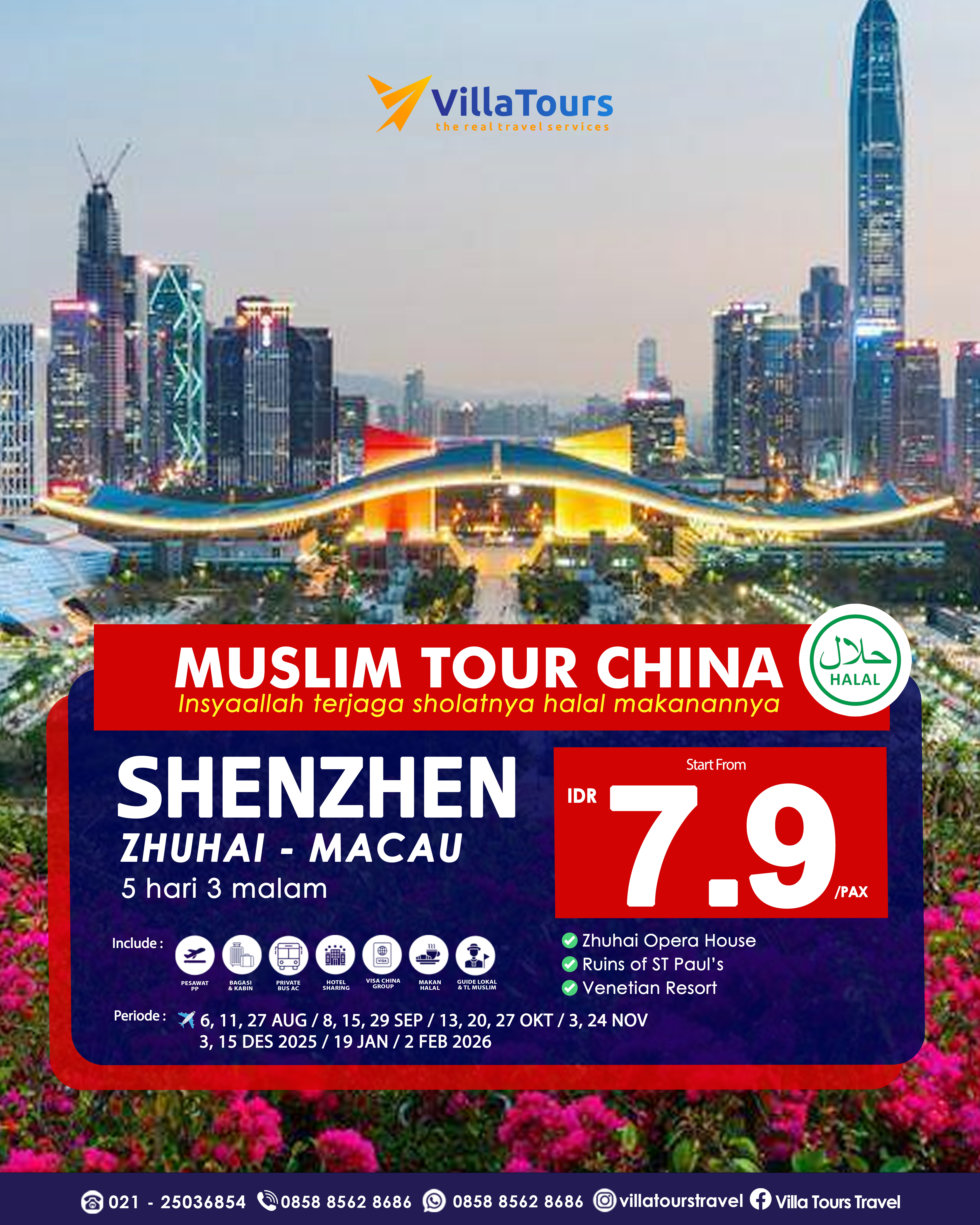 ITINERARY : Jadwal dan Itinerary dapat berubah sewaktu- waktu tanpa pemberitahuan terlebih dahulu menyesuaikan kebijakan pihak airlines, hotel dan partner agent di luar negeri. Segala kerugian yang terjadi baik materil atau immateril yang timbul tidak dapat dibebankan kepada pihak Villa Tours.