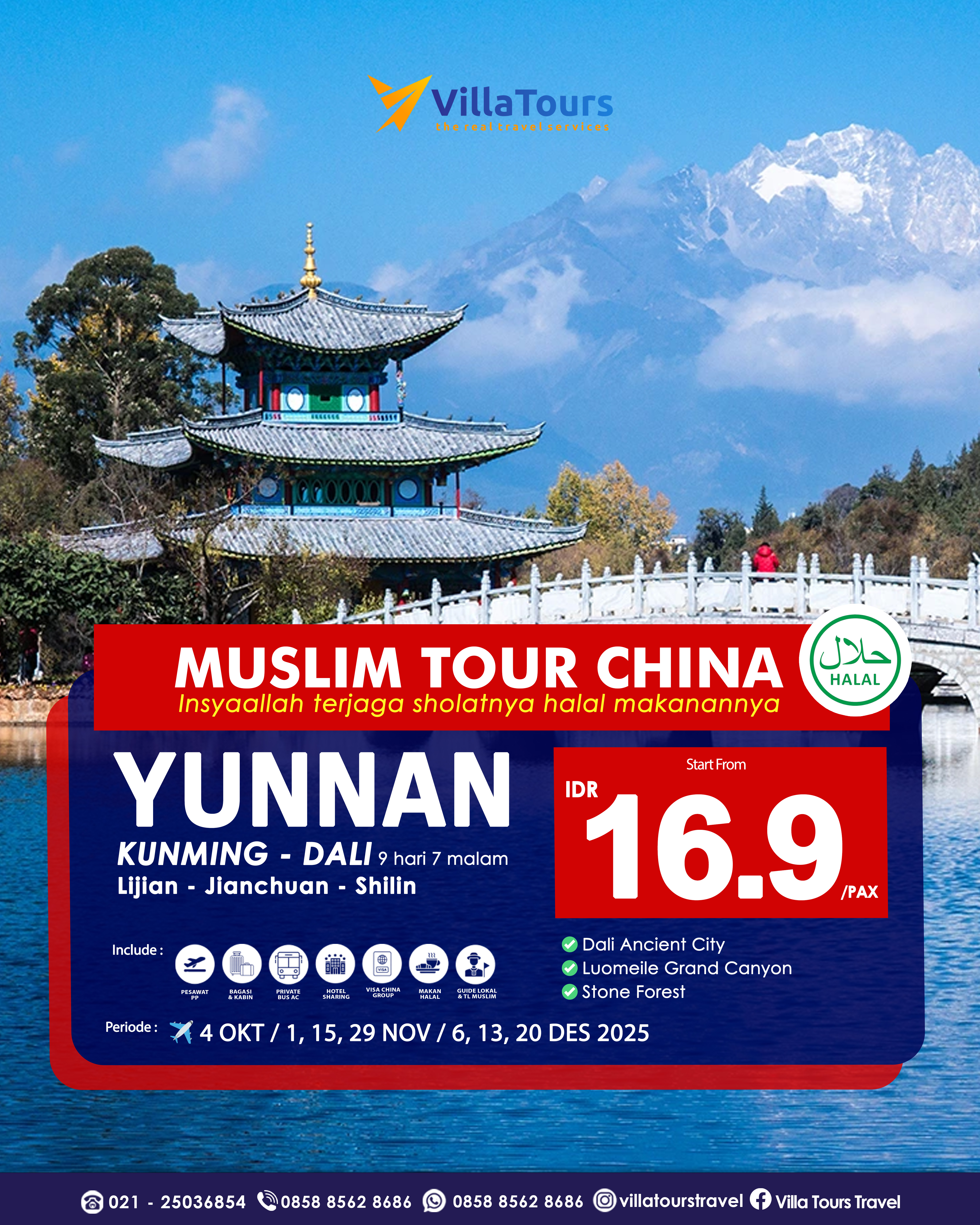ITINERARY : Jadwal dan Itinerary dapat berubah sewaktu- waktu tanpa pemberitahuan terlebih dahulu menyesuaikan kebijakan pihak airlines, hotel dan partner agent di luar negeri. Segala kerugian yang terjadi baik materil atau immateril yang timbul tidak dapat dibebankan kepada pihak Villa Tours.