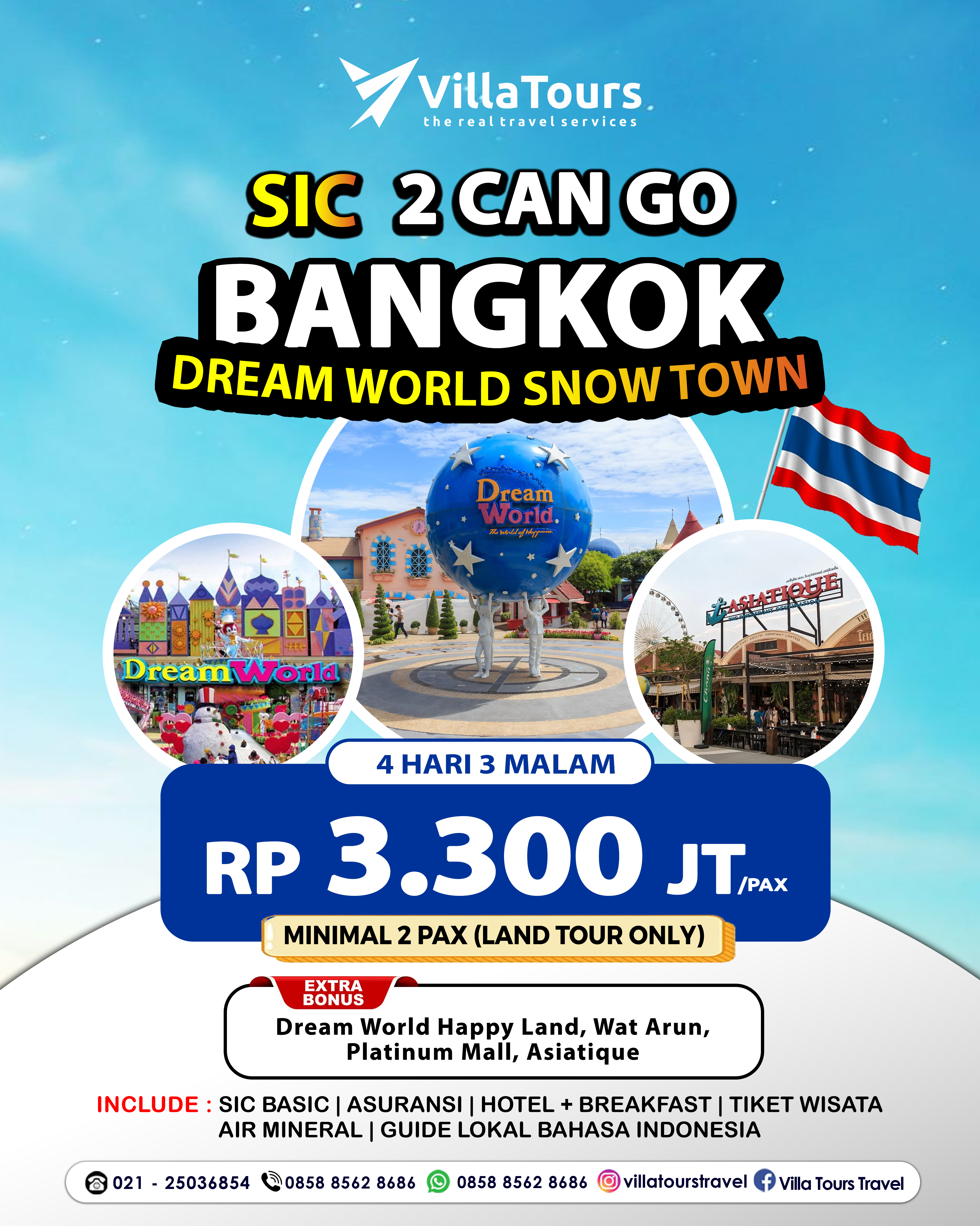 - ABF at Hotel, Dream World Happy Land Bangkok (Include unlimited Time: Dream Garden, Fantasy Land, Adventure Land, Plaza, Snow Town), lunch at Dream World, MBK Shopping Mall (Siam Square Walking Street walk by own), Jodd Fairs Night Market, Dinner by own at Jodd Fairs Night Market, back to hotel