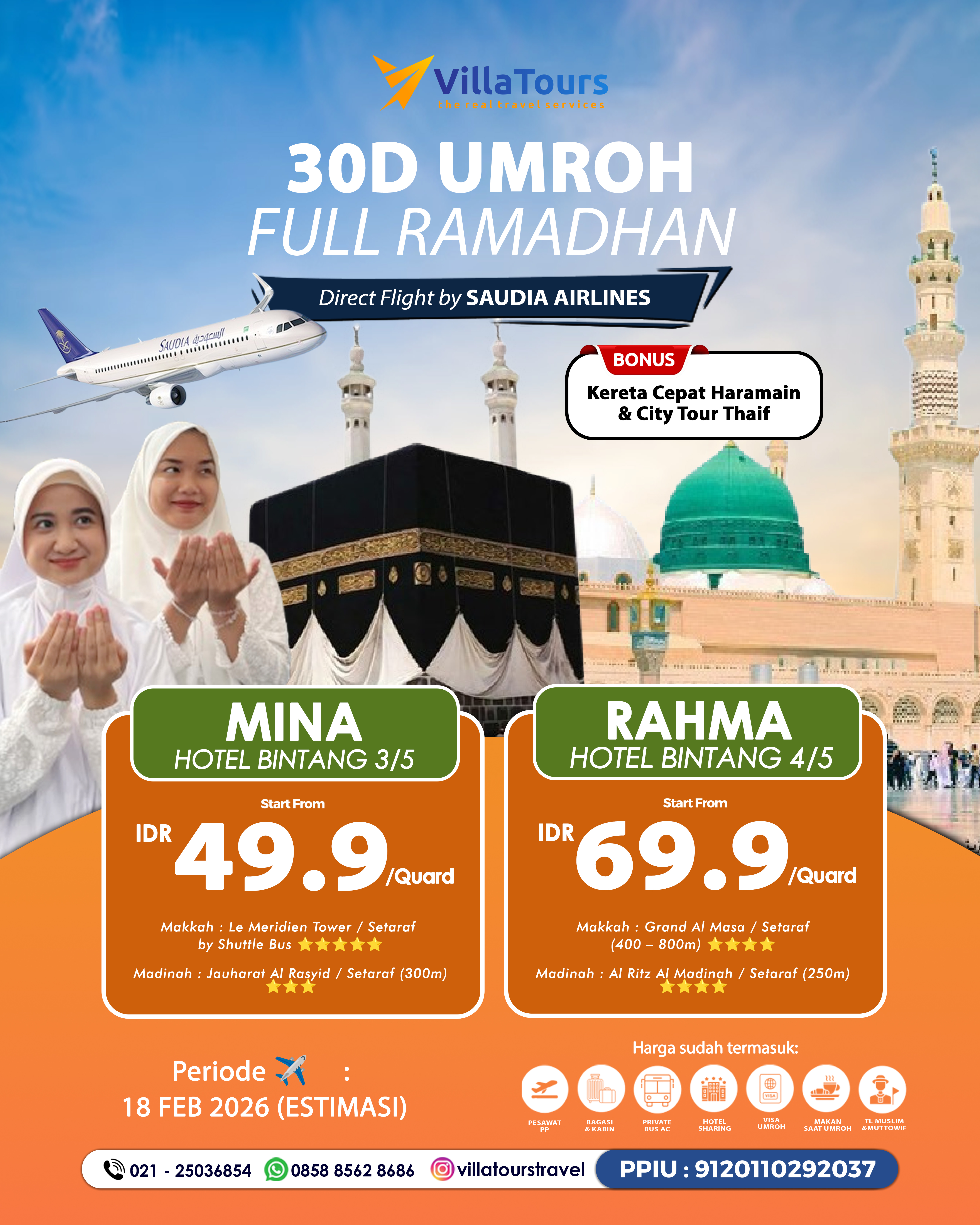 • Insyaallah Tiba di Jakarta. Bismillah mendapatkan “Umrah Maqbullah“ dan kenangan yang indah bersama VILLA TOURS. Terimakasih dan sampai jumpa kembali dalam program selanjutnya.
